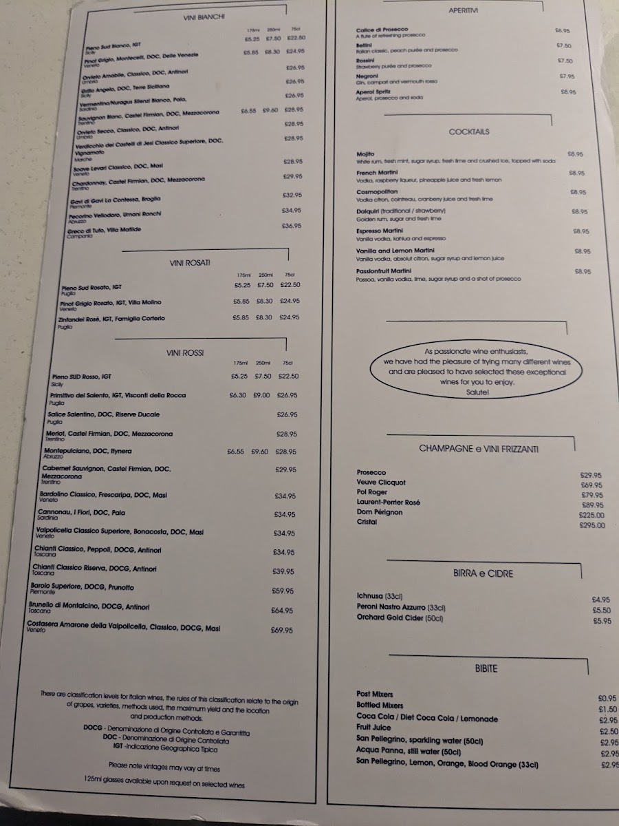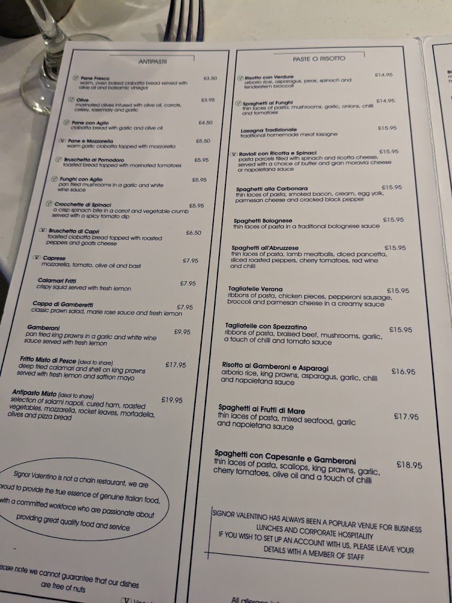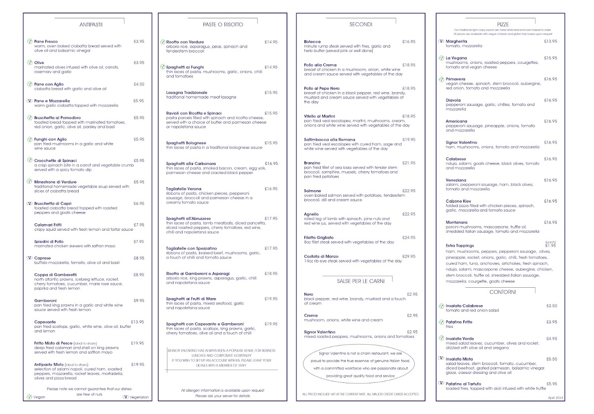 Signor Valentino Menu Review